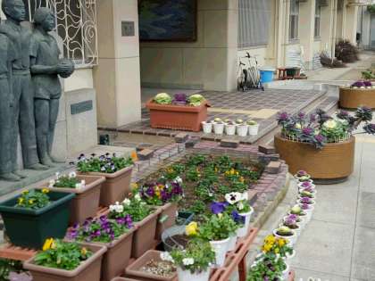 このところの陽気で、年末に植えた正門付近のパンジーや葉ボタンが、色鮮やかに映えています。午前中は、冬休みの課題を仕あげようと登校する2年生や、運動場では、ソフトテニス部が元気に活動していました。明日、全校生徒が元気な姿で、登校してくれることを心待ちにしています