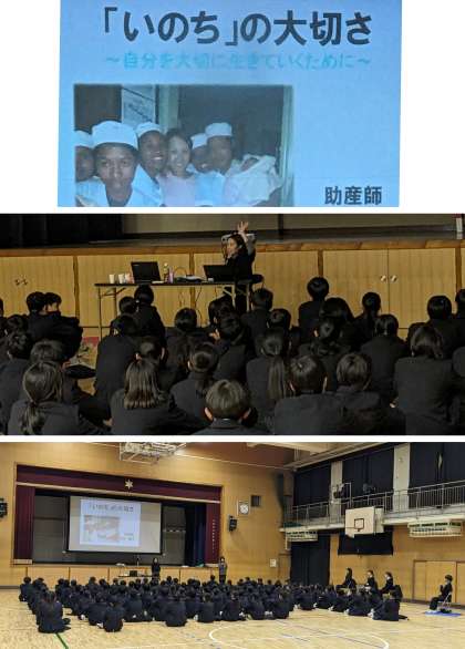 大阪急性期総合医療センターから助産師さんに来ていただき、「いのち」の大切さについて学んでいます。