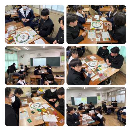 3年3組では学級休業となりましたが、3年2組では、ESGゲーム SDGsと投資を組み合わせたゲーム「ESGボードゲーム」を本日行いました。