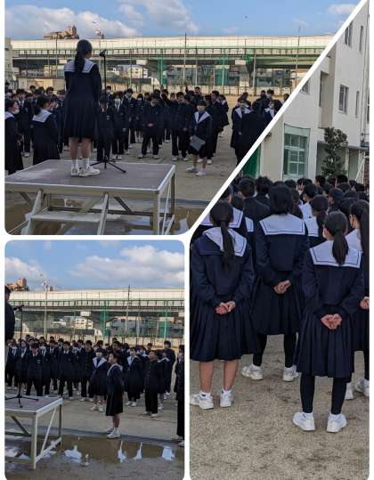 3年生が卒業した後、1・2年生だけの全校集会です。