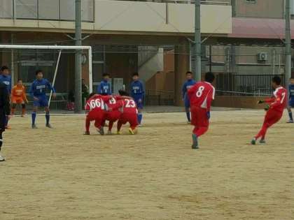 1月23日(土)午後、サッカー部は、1月中旬から下旬にかけて開催されている7ブロック(地区)大会予選リーグ戦に出場しています。今日は、4試合を戦う第2戦目。底冷えのする天候のもと、1年生が主体の本校イレブンは気持ちを集中させ、実力のあるチームに対し果敢に挑みました。