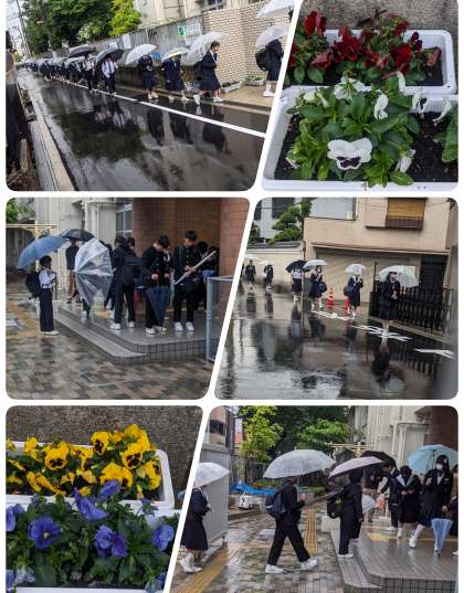 雨の中の登校です。