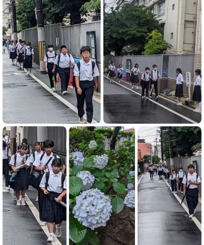 梅雨入りしましたが、登校時は雨が止んでいます。