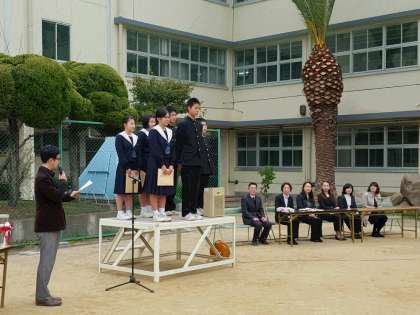 3月8日(火)1限、毎年、卒業式を控えたこの時期に、同窓会及びPTA役員・実行委員会の方々のご協力で「同窓会入会式」を行っています。