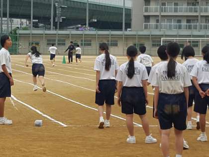 5月6日(金)2限、今日は朝から曇り空。昼前から雨が降るとの予報どおりの天候となりました。午前中にあった3年生1・2組体育の授業は、男女とも運動場の状態が良好の中で、50m走の計測を行っていました。