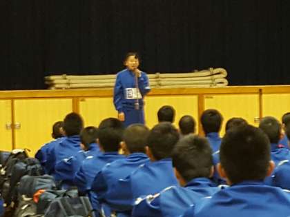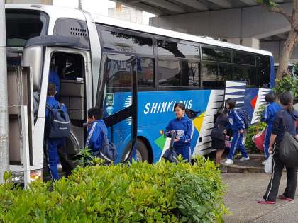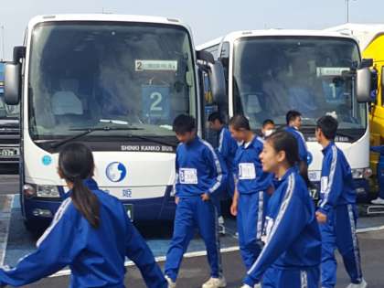 5月17日(火)朝、昨日からの雨も降りやんできました。寒冷前線の通過で、少し肌寒さも感じる朝となりました。出発式では、生徒代表から、『修学旅行でお世話になる方々に感謝し、すばらしい3日間をみんなでつくりましょう』と、決意が語られました。 午前7時過ぎ、バスに乗り込み、保護者、職員の方々に見送られて元気に出発しました。