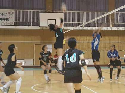 各会場校とも1回戦から3回戦までのトーナメント戦。1回戦は、序盤に硬さが見られ第1セットを落とす苦しい展開となりましたが、続く2セットを連取し勝利。2回戦も立ち上がりから主導権は相手校。終盤の粘りで27-25でものにすると、続く第2セットも波にのって奪うことができました。3回戦は、今日の会場校で試合巧者のチーム。実力がぶつかり合う好ゲームを本校が制し3連勝。旋風を巻き起こす快進撃は見事でした。