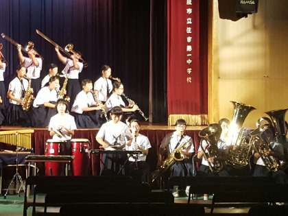 今年の吹奏楽部は、全学年で総勢約35名。1年生は夏休みからの舞台入りとあって、あふれんばかりの部員たちで奏でる音の響きは、迫力がありました。3年生にとって一中の後輩たちとは、これが最後の共演。部のモットーである「一音入魂」、笑顔のファイナルステージとなりました。