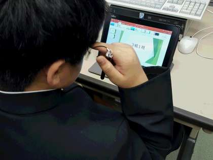 当日は、各場所でワークシートや見学メモの作成。今日は、班に1つ持ち出すタブレットでの画像の撮影や編集、文字の入力や編集など、プレゼンテーションができるように、係生徒が事前講習会を受けていました