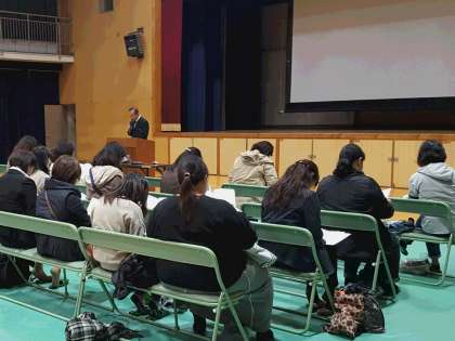 後半では、本校進路指導担当より、私立高校入試や公立高校入学者選抜実施要項などを説明しました。昨年度から公立高校では、入試制度改革が実施されています。進路決定で大切なのは、本人が将来の生き方を見据えて抱く志望動機と、進路先が求める生徒像が一致することだと思います。
