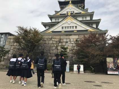 11月10日(木)、2年生の秋の校外学習は、各班に分かれてのフィールドワーク。今回の「大阪体験学習」では、歴史・文化・自然科学・人権の観点で8施設の中から、班ごとに3ヶ所を巡る調べ学習です。今までも「わたしたちの町」に関する学習はしましたが、今回、調べて記すワークシートは、より内容の深いものでした。また、班ごとにタブレットを持ち、後日プレゼンテーションをする際に必要な撮影も行ないました。