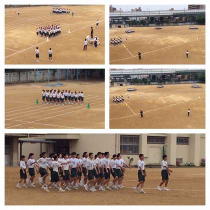 8日(月)の一年、二年生の合同学年練習に続いて、9日(火)5・6限に練習を行いました。三年生だけあって、動作も上級生らしい動きで、単独学年でしたが、昨日の1・2年生より大きな声が出ていました。