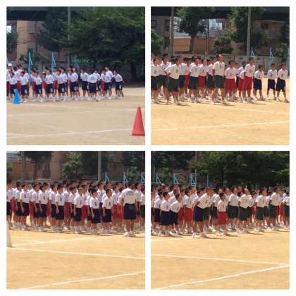 5日(月)午後、全体練習を行いました。縦割りの応援練習がメインです。本番が今週末ということで、一段と真剣さが伝わってきます。頑張れ一中生!