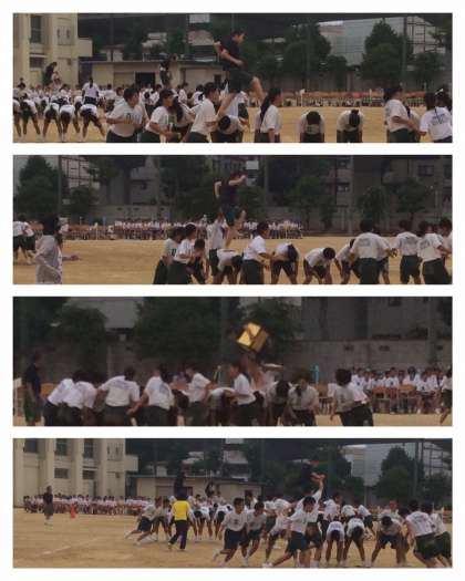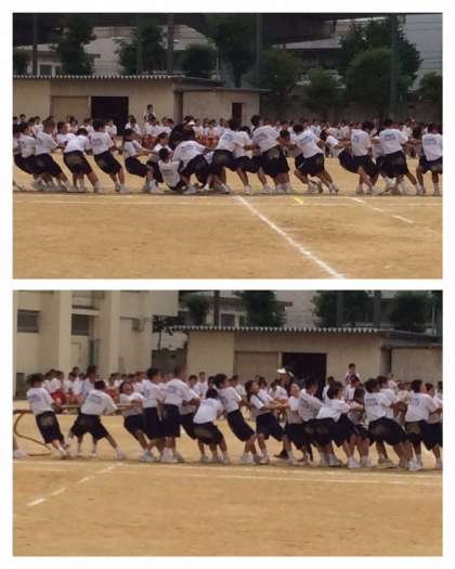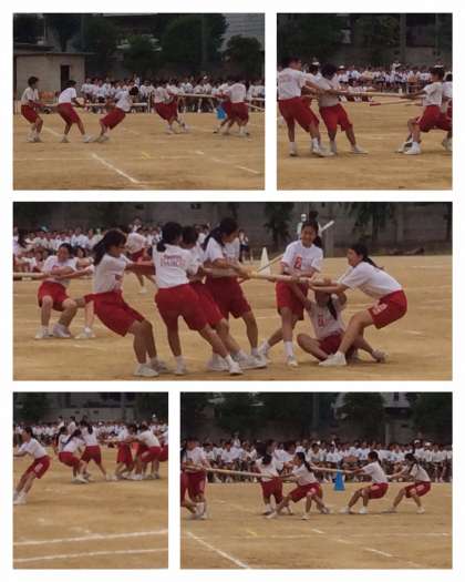 昼食後、予行を再開しました。学年団体種目(1年生ー綱引き)(2年生ー棒引き)(3年生−鼠小僧)などを行いました。