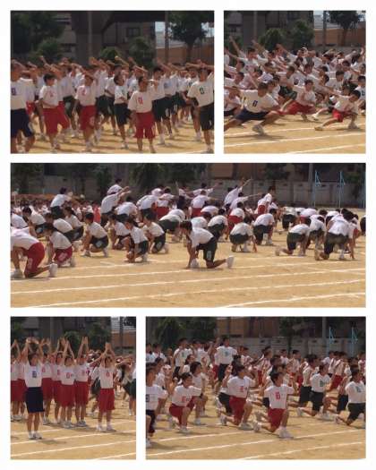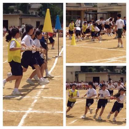 全学年種目の「台風の目」や縦割り応援合戦などの予行も行いました。