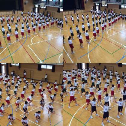 7日(水)午後から全体練習でしたが、雨のため三つの団はそれぞれ、体育館やピロティ−、多目的室で練習をしました。いよいよ明日本番です。