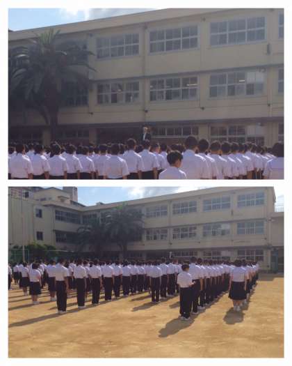 全校朝礼がありました。全校朝礼で、「運動会の閉会式では、『一人一人が頑張ったことで、見に来られたお客さまに感動を与えてくれました。』という話をしましたが、日々の練習を頑張ったからこそ、感動を与えることができたのですし、日々の練習の時には、面白くなく、しんどいなと思っていた人も多かったのではないでしょうか。けれど、その面白くないかもしれないし、しんどいことかも知れないけれど、コツコツと積み上げてきたからこそ、素晴らしいものができたのです。そのことを学んだ皆さんは、これからの学校生活のいろいろなところで、その頑張りを積み上げていってくれることだと期待しています。」というお話を校長先生から聞きました。
