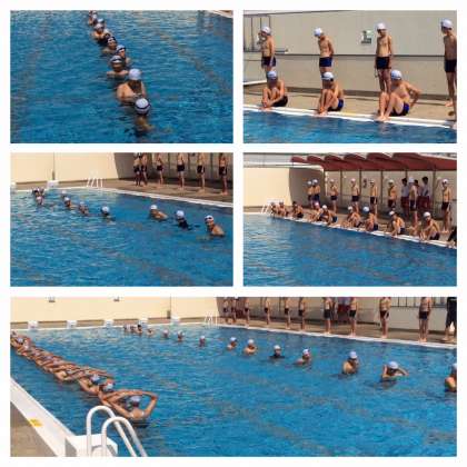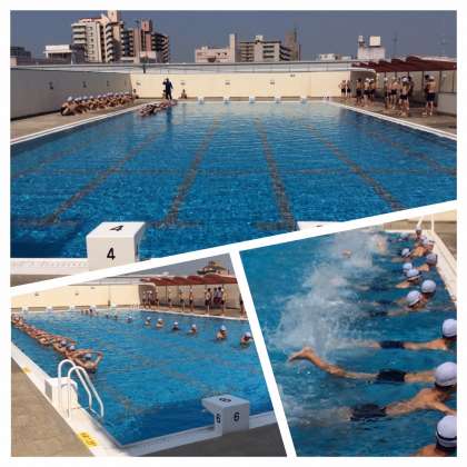23日(金)1限、2年生の体育の授業はプールでの水泳授業。入水方法から指導を受けていましたが、朝から気温が上がり、水しぶきが、気持ちよさを表現しているようです。