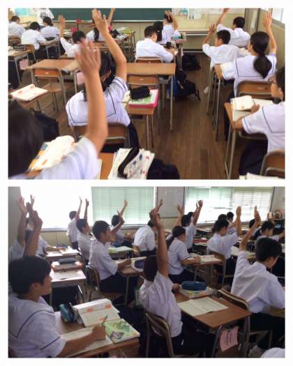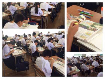期末テスト前に集中して授業を受けている1限目の様子です。1年1組は、社会科の授業(上段)。2組は、国語の授業(中段)。3組は、技術の授業(下段)でした。