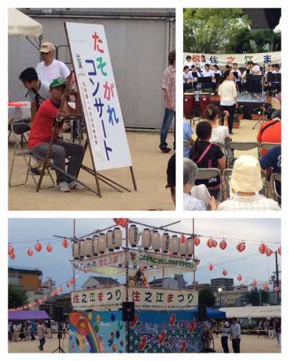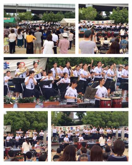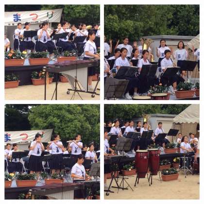 8日(土)夕方、住之江まつりで、吹奏楽部がたそがれコンサートを行いました。たくさんの人の前で、立派に演奏をしてくれました。当日は、ケーブルテレビの収録もありました。