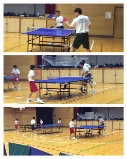 3日(木)午後の体育館。カーテンを閉め切っての練習。暑い中でも、頑張って練習をしていました。