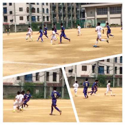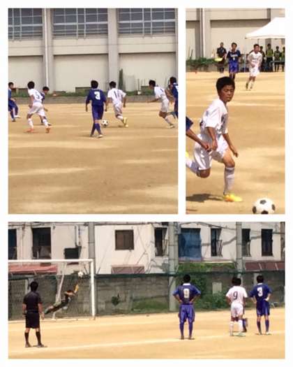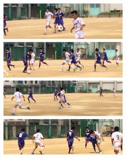 今宮中学校を会場に、住吉区の三稜中学校との一戦が、17日(木)の午後行われました。前半、住吉第一中学校(白のユニフォーム)は、有利な展開から一点先取しました。そのまま休憩をはさんで後半も終盤に差し掛かったところ、一瞬のスキを突かれて、同点にされました。終了のホイッスルが鳴った時は、同点でした。