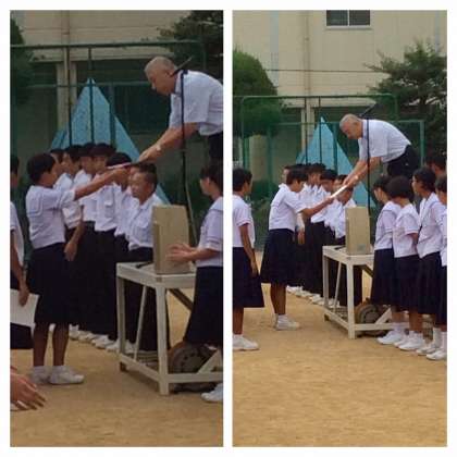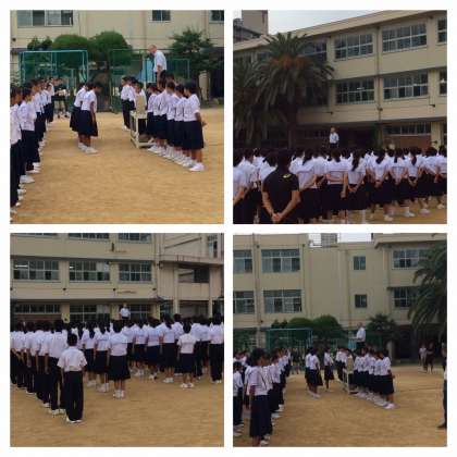 4日(月)、全校朝礼がありました。ハンドボール部の人たちがジュニアオリンピック大阪選抜チームに選ばれ、その選抜チームが優勝したので賞状伝達がありました。また、校長先生から、1日が防災の日、5日が大阪880万人訓練があり、災害が起きた時には、まず自分の身を自分で守る=自助。そして、近くの人たち、地域や仲間と守る共助がそのあとにあり、時間がたってから公の機関が力になってくれるという公助があることを確認してほしい。先週はミサイルが飛んでくるかもしれないとか、昨日は水爆実験があったなどという物騒なニュースが入ってきていますが、とにかく、災害時には、自分の頭を保護する行動をとるように、自助を心がけるようにというお話でした。