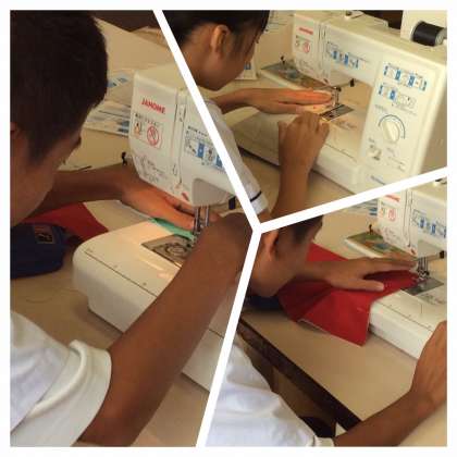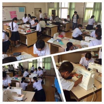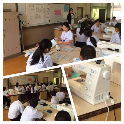 19日(火)、4限。家庭科の授業でした。被服室で、ミシンの学習です。各部品の名前の復習から始まり、指示されたところをミシンで縫い合わせる実習です。楽しくワイワイガヤガヤと作業に取組んでいました。