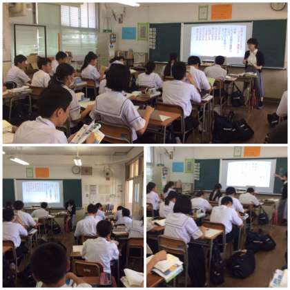 3年2組の5限は、国語でした。「和歌の世界」の学習でした。万葉集や古今和歌集の勉強でした。言葉の解釈や古文の約束事など学ぶことはたくさんありました。