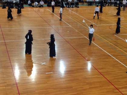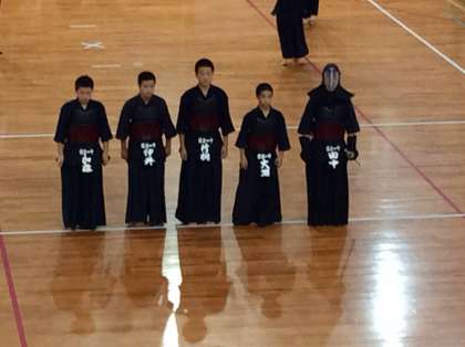 大阪市総合体育大会で、剣道部が住吉スポーツセンターで、新人戦が行われました。初戦は、清風戦でした。一勝二敗一引き分けで大将戦。田中君が二本先取し、住吉第一中学校が辛くも一勝しました。二回戦も頑張れ!