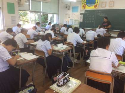 5限、社会科の授業でした。歴史の復習小テストを受け、公民分野社会集団について学んでいました。