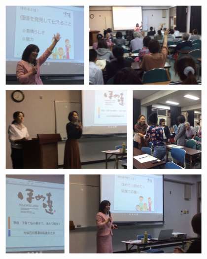 住吉第一中学校区四校園PTA連絡協議会主催の人権研修会が、5日(木)19時から、住吉第一中学校多目的室で行われました。本年度は、昨年度粉浜小学校PTAの研修会で好評だった「ほめる達人協会」の中田徳子先生を講師にお迎えし、1時間30分のご講演を聞かせていただきました。「ほめるとは、価値を発見して伝えること。挨拶することも、しかることもほめることの一つです。向き合うこと、応援すること。」とおっしゃっていました。たくさんの方々が熱心に聞き、メモを取っておられました。ご講演の後、質疑応答の時間を設けていただき、子育ての悩みについて、丁寧に対応されていました。