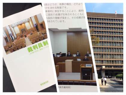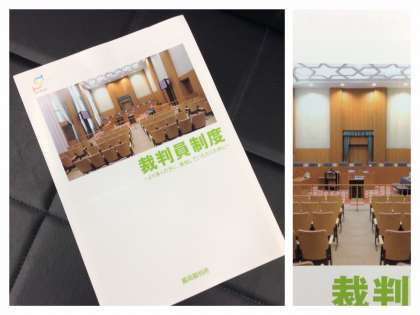 裁判所では、本物の裁判官から裁判員制度について、説明をいただきました。また、その後、実際の裁判の傍聴もさせていただきました。写真は、裁判所でいただいた資料です。