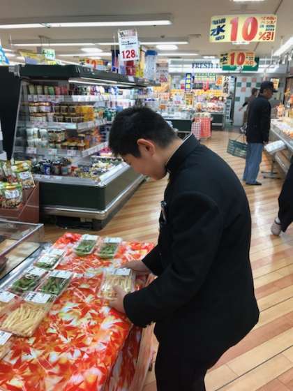 18日(水)、学校近くのスーパーサンエーに、数学の学習の成果を確認するために買い物をし、商品を選び、レジに並び、お金を支払うことの研修をしました。昼ごはんに一品添えるということで、お総菜を買うことになりました。それぞれが好きなお総菜を選び、レジに持っていきます。持っているお金で、無事買い物ができました。昼食時、楽しくいただきました。