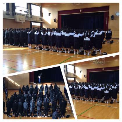 11日(土)の記念式典に向けて、1,2年生合同で歌の練習を行いました。みんなで厳粛な中にも希望あふれる式典になるよう努めています。