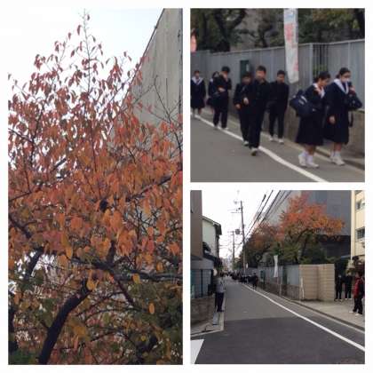 22日(水)の今朝は、今季最も低い気温でした。校庭の桜の葉も紅葉しています。そんな中、元気に登校してくる様子です。来週後半は、期末テストです。寒さに負けず、頑張りましょう。