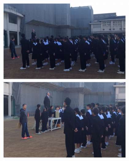 人権週間が始まりました。40週お母さんのお腹で育ち、生まれた赤ちゃんは、人種や男女に関係なく、ほぼ同じ音程で泣くと言われています。生徒会の東さんにその音程を吹いてもらいました。成長するにつれ、例えば、いじめなどで加害と被害に分かれることのないよう、心がけて生活しようという校長先生のお話でした。