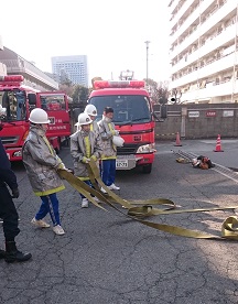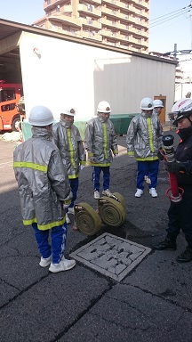 「住之江消防署」では、消火訓練などに参加させていただきました。消防士のみなさんの、大変さがよくわかりました。