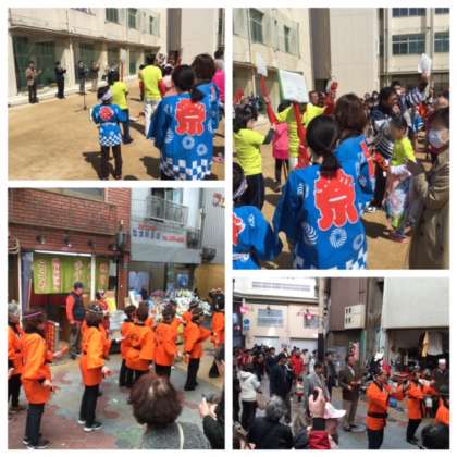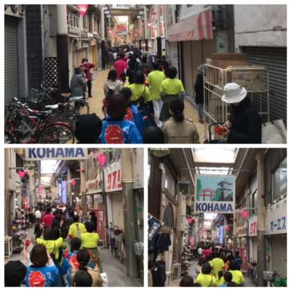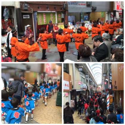 8日(日)、午後、第1回粉浜よさこい かえる祭りが行われました。170名以上の参加で、粉浜小学校から住吉公園、住吉大社まで踊りながらパレードしました。地域の方々の思いの強さを見ることができました。