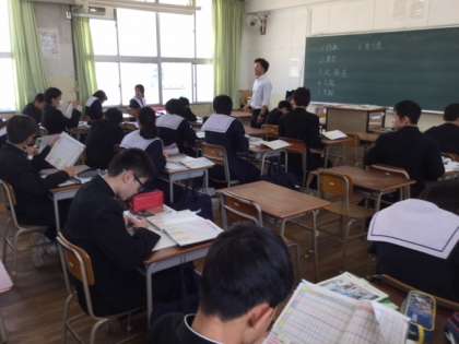 2年生の2限目は、1組が技術科、2組が少人数授業の数学、3組が社会科です。