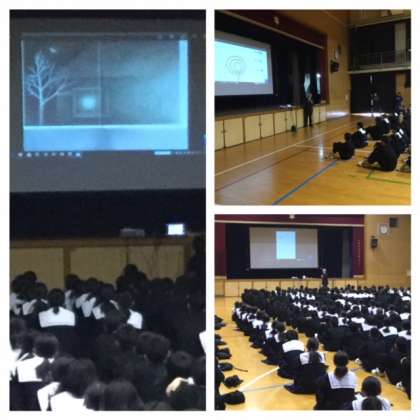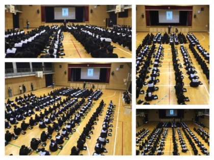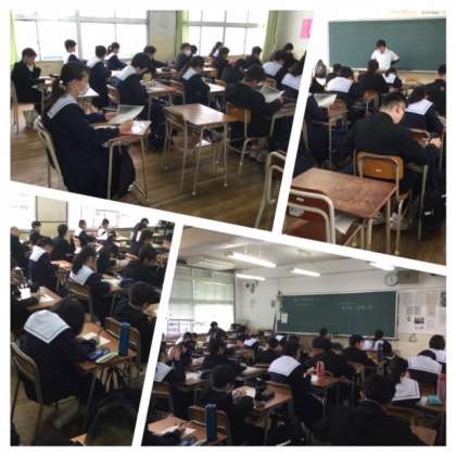 いじめ防止に向けた取り組みとして、昨年度から始まった「いじめについて考える日」の取り組みが行われました。4限の道徳の時間に、全学年の生徒が体育館に入り、校長先生の講話を聴きました。今年度は、「わたしのいもうと」という絵本を、校長先生が読んでくださいました。そして、いじめが人に与えるダメージとして脳幹に影響するという話を聞きました。教室にもどり、いじめられた「妹」の気持ちを話し合い、いじめについて感想文を書きました。いじめは命を脅かす行為であること。また、絶対に許されるものではないことを学びました。
