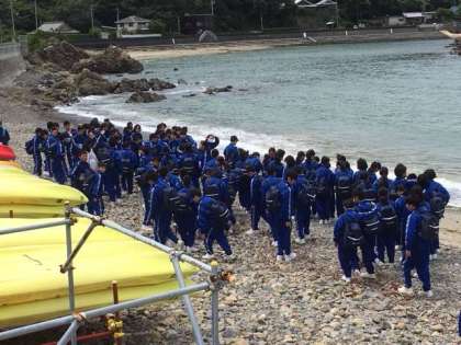 予定通り、11:20頃、宿舎のある「日高少年自然の家」に到着。学級ごとに写真撮影を行いました。
