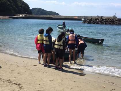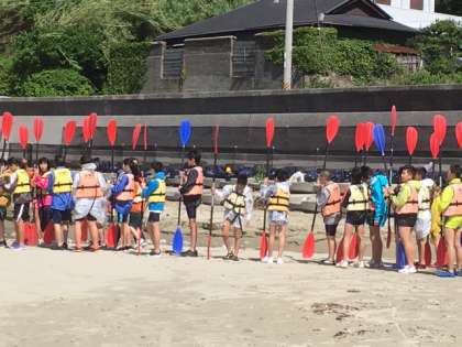 いよいよ、海での活動が始まりました。学級別に、そして時間制でカヌー体験、カヤック体験、サンドアート体験などに取組みます。