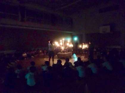 夕食終了後、体育室に集まり、キャンドルファイヤー、レクレーション大会が始まりました。