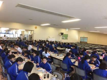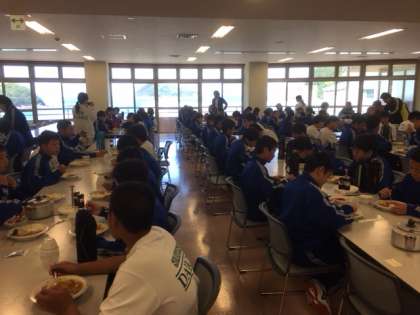 朝から、海での活動ですっかりおなかが減りました。二日目の昼食はカレーでした。