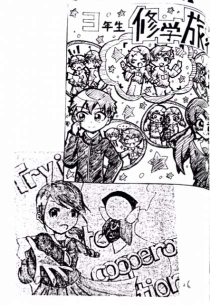 しおりの表紙や中のイラストは3年生の手作り作品です。