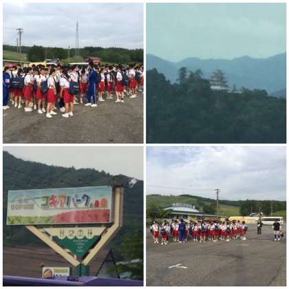 ひるがの高原の宿舎に到着。クラスごとの分宿になるので、宿舎の方々が迎えにきてくれました。