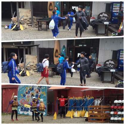 修学旅行 ラフティング準備