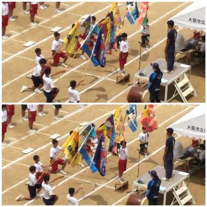 入場行進から始まります。行進の様子は、やはり経験を重ねている3年生が上手ですね。
