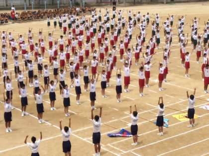 選手宣誓に続き、校歌斉唱、準備体操へと続きます。